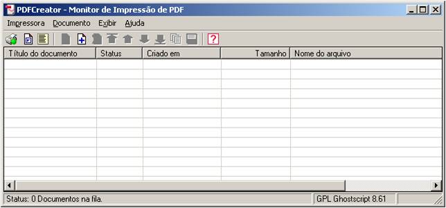 7. Abra o aplicativo do PDF creator, lá estará a lista de arquivos que foram enviados para impressão.