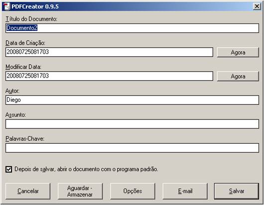 8. Informe os dados sobre o arquivo, clique em salvar e pronto. PDF gerado.