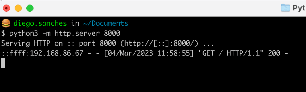 Quando abrir o terminal, navegue ate o folder em que gostaria de compartilhar. No meu exemplo abaixo estamos compartilhando a pasta Documents